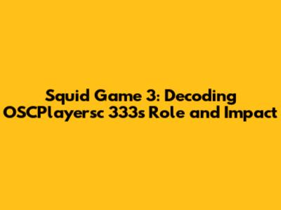 Squid Game 3: OSCPlayersc 333's Role?