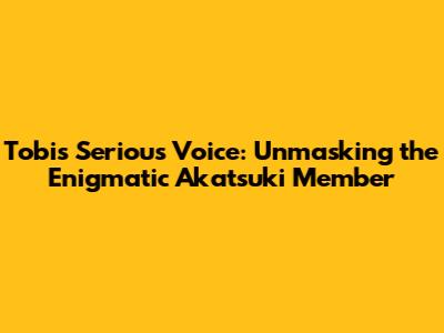 Hey guys! Ever wondered about the mysterious character Tobi from the epic anime Naruto? We all know him for his goofy antics and that ridiculously high-pitched voice. But, have you ever really delved into the times when Tobi drops the act and lets his serious voice take over? It's a game-changer, right? It's like watching a completely different person! This article is going to be a deep dive into Tobi's serious voice, exploring the moments it appears, the implications behind it, and what it reveals about the true identity of the man behind the mask. Buckle up, because we're about to unravel some seriously cool stuff!