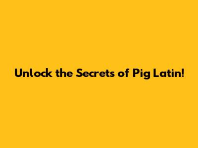 Unlock The Secrets Of Pig Latin!
