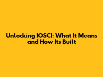 Unlocking IOSCI: What It Means And How It's Built