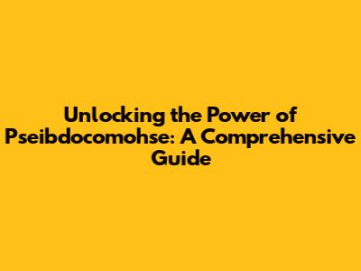 Unlocking The Power Of Pseibdocomohse: A Comprehensive Guide
