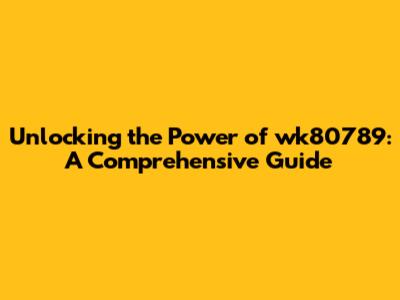 Unlocking The Power Of Wk80789: A Comprehensive Guide