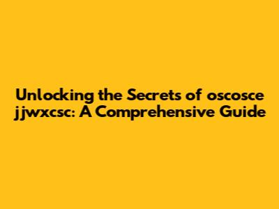 Unlocking The Secrets Of Oscosce Jjwxcsc: A Comprehensive Guide