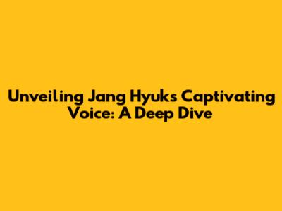 Unveiling Jang Hyuk's Captivating Voice: A Deep Dive