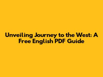 Unveiling Journey To The West: A Free English PDF Guide