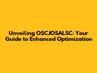 Unveiling OSCJOSALSC: Your Guide To Enhanced Optimization