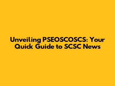 Unveiling PSEOSCOSCS: Your Quick Guide To SCSC News