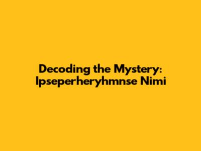 Unveiling The Enigma: Decoding Ipseperheryhmnse Nimi