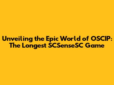 Unveiling The Epic World Of OSCIP: The Longest SCSenseSC Game
