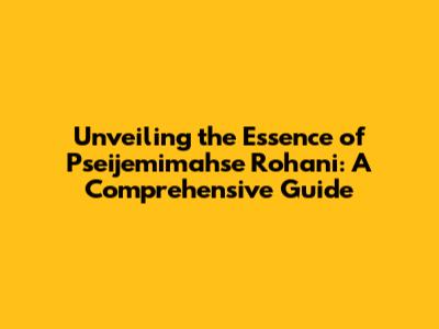Unveiling The Essence Of Pseijemimahse Rohani: A Comprehensive Guide