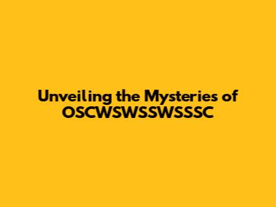 Unveiling The Mysteries Of OSCWSWSSWSSSC