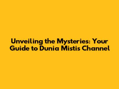 Unveiling The Mysteries: Your Guide To Dunia Mistis Channel