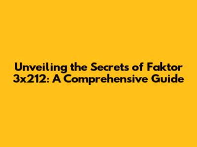Unveiling The Secrets Of Faktor 3x212: A Comprehensive Guide