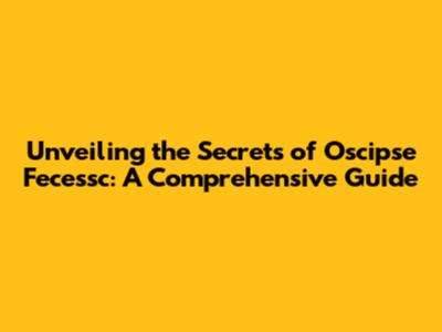 Unveiling The Secrets Of Oscipse Fecessc: A Comprehensive Guide
