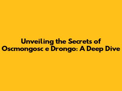 Unveiling The Secrets Of Oscmongosc E Drongo: A Deep Dive