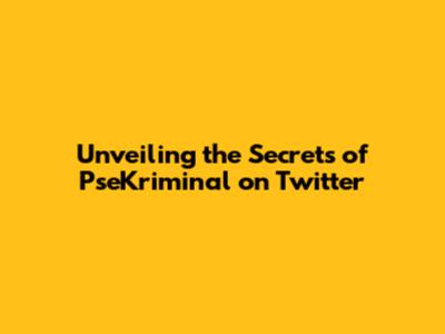 Unveiling The Secrets Of PseKriminal On Twitter