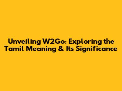 Unveiling W2Go: Exploring The Tamil Meaning & Its Significance