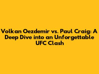 In conclusion, the Volkan Oezdemir vs. Paul Craig fight was a thrilling battle that showcased the best of what MMA has to offer. From the early striking exchanges to the gripping ground battles, this fight had it all. The strategic depth, the physical challenges, and the dramatic finish made it a fight to remember. It’s a testament to the skill, determination, and resilience of both fighters.