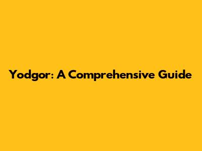 Yodgor: A Comprehensive Guide